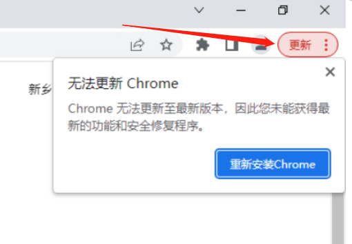 1、点击提示框中的【重新安装Chrome】,之后会弹出一个前往谷歌浏览器官网的页面。