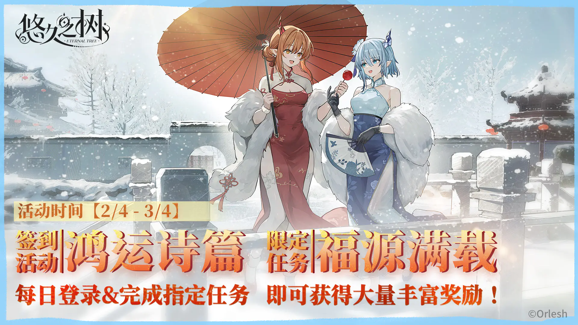 截止至3月4日,签到活动「鸿运诗篇」、限定任务「福源满载」登场!每日登录或完成指定任务即可获得140连免费许愿机会与其他丰富奖励!