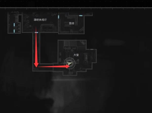在酒吧休闲厅的吧台的柱子上(下图圈出位置),拿到女主的照片,照片背面有【老旧钥匙】。
