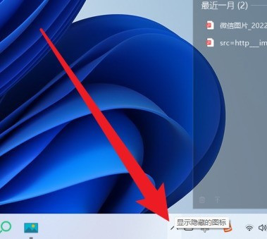 1、单击电脑桌面右下角的【显示隐藏的图标】。