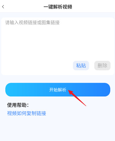 2、将需要去水印的视频链接或图集链接复制到输入框中,然后点击开始解析。