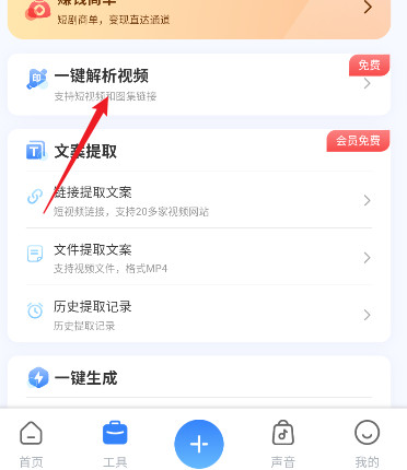 1、开启软件后,在工具中找到一键解析视频并打开。