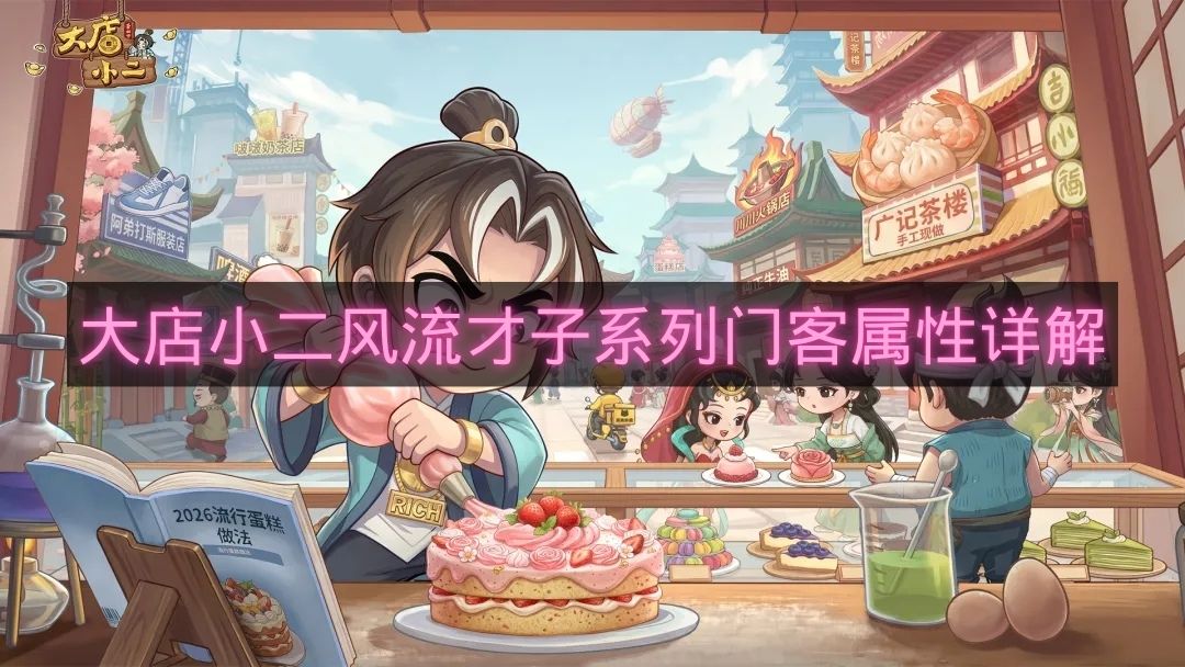 在《大店小二》中,风流才子系列共有六个门客,许多玩家不了解这几个门客有哪些属性和用途,下面彩旗小编会分享大店小二风流才子系列门客属性详解的资讯让玩家可以往下方做个参考吧。