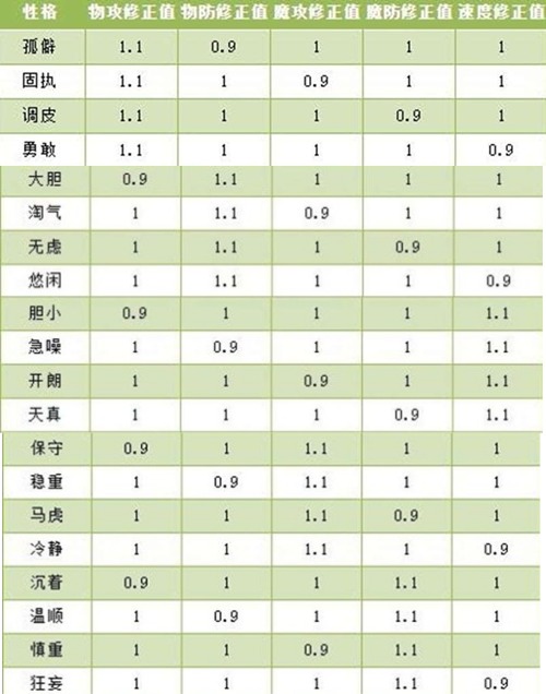 以胆小、急躁、开朗和天真为代表的性格,可以提升10%的速度属性。作为交换,它们会分别减少10%的物理攻击、物理防御、魔法攻击和魔法抗性。对于需要抢先手的宠物来说是不错的选择。