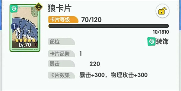 卡片强化加的属性也不少,优先强化武器、护符,最好跟到等级走,其次是装饰,装饰补暴击爆伤,然后是盔甲,盔甲强化加生命,披风和鞋子加防御的,可以暂时不强化。