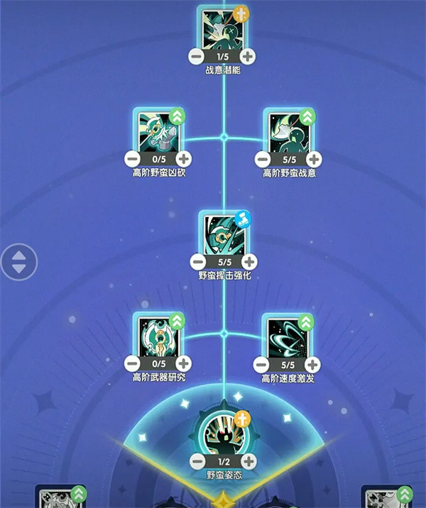 天赋技能:野蛮姿态1,高阶速度激发5,野蛮挥击强化5,高阶野蛮战意5,战意潜能1(天赋点优先补满战意潜能)。