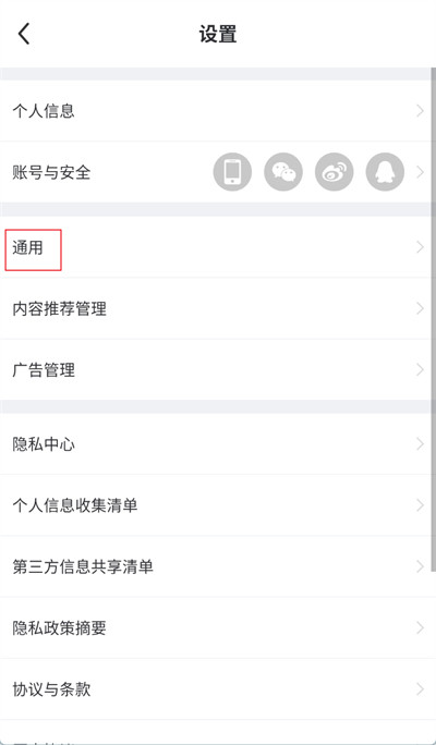 3、进入设置功能界面后,找到其中的【通用】选项点击。