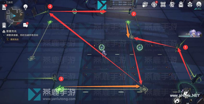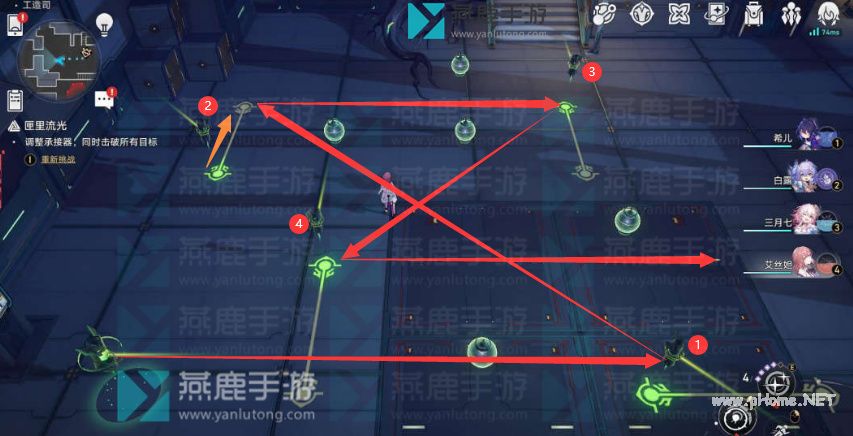 5、调整方向。第①顺时针4次。第②移动后,顺时针3次。第③逆时针3次。第④顺时针2次。