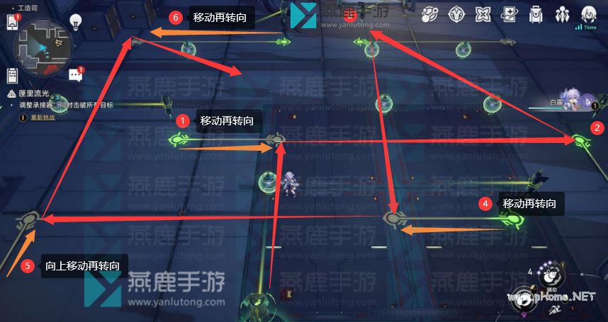 5、调整方向。第①逆时针2次。第②移动后,逆时针2次。第③移动后,顺时针1次。第④逆时针3次。