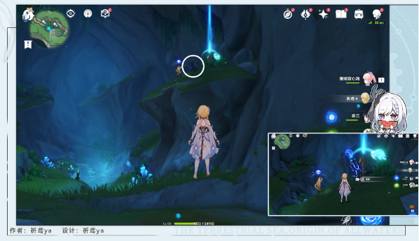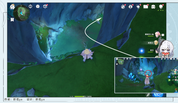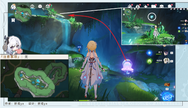 5、之后靠近旁边的水母,飞到北边的崖壁上,在这里可以引导第二个仙灵;
