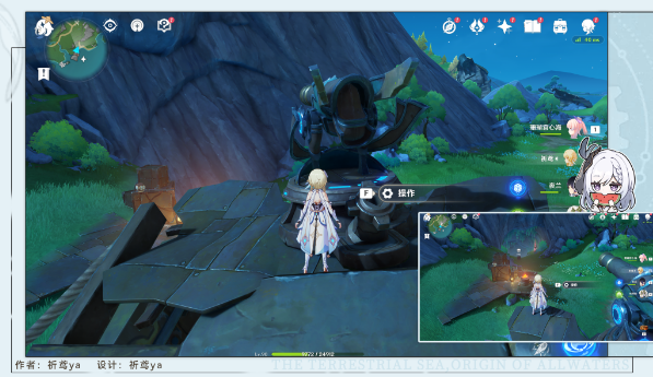 3、答题完成之后,要去操作旁边的舰炮轰开石墙(直接发射即可),开启宝箱和传送点;