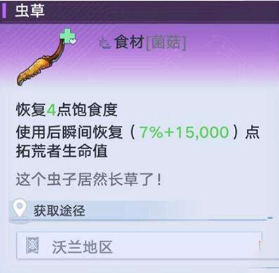 解析:虫草是一个菌类的食材,在幻塔游戏里面的主要分布地区是在沃兰。