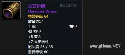 光芒护腕:布甲护腕,+8智力,+7火焰抗性,装备效果每5秒回复9点法力值。