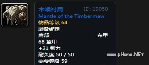 木喉衬肩:布甲肩部,68护甲,+21智力,装备效果每5秒回复6点法力值。