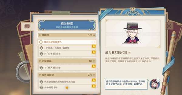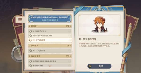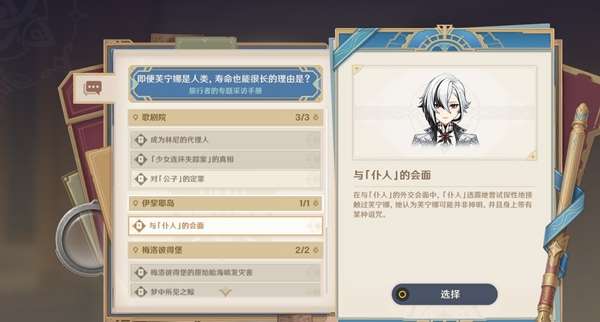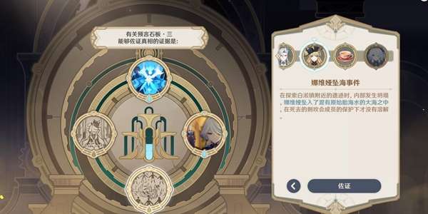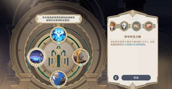 接着就继续选择那维莱特对话:盘点真相,最后在佐证选择的是【梦中所见之鲸】。