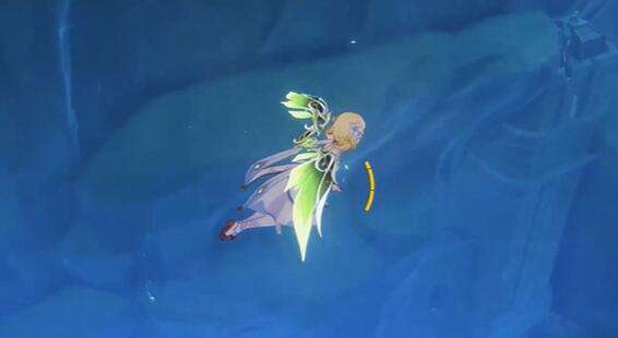 2、进入湖底部来到发光柱子前。